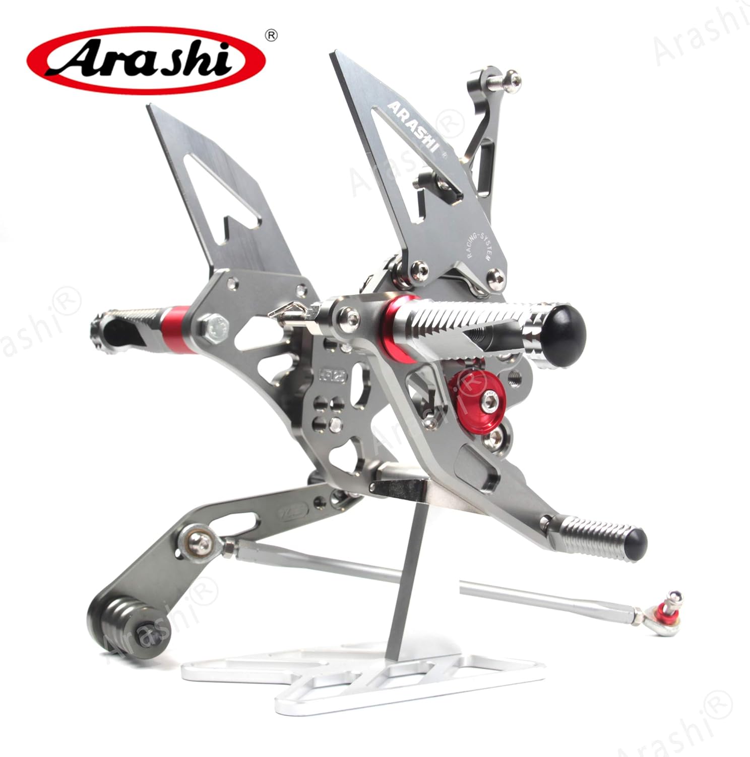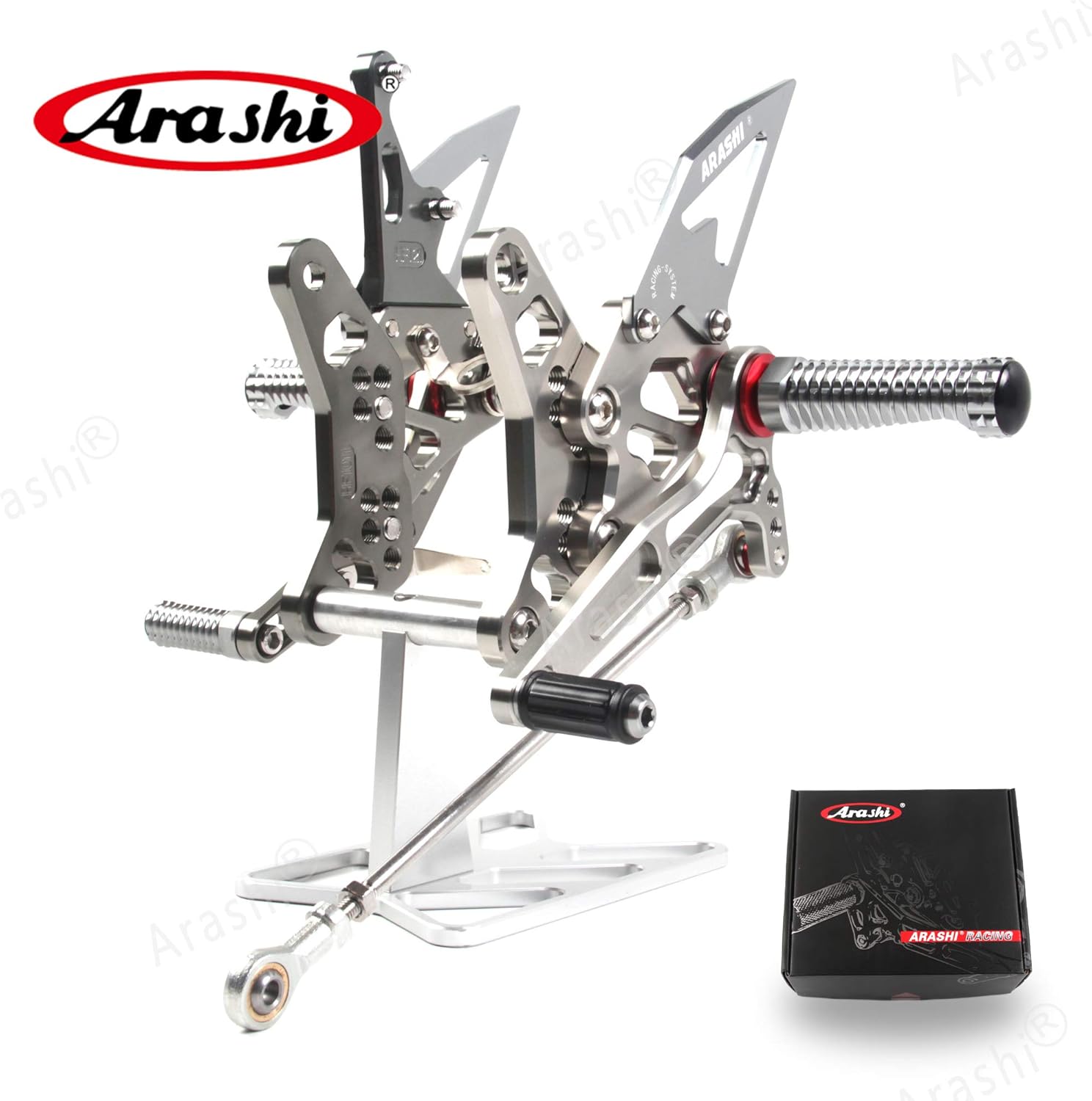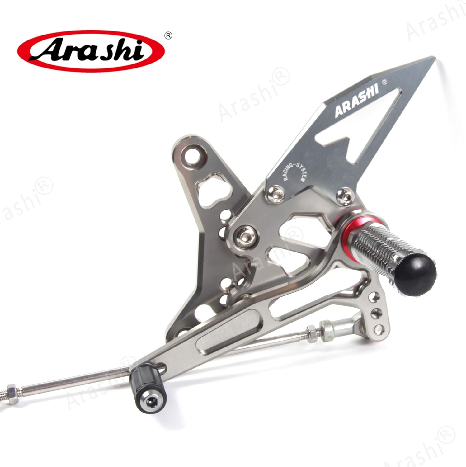 IMPROVED! Arashi Adjustable Footrest Version 2.0. Feature: Condition: 100% Brand New.Upgraded foot pegs are air weight crafted.Upgraded Heel guard carries extra thickness. Enhanced knurled edge creates slip resistance. Engineered specifically for your bike with Arashi engraved. Customized shift linkage delivers accurate gearshift. Designed for precision fit and easy adjustment to suit your riding position. Control the brake light. External return spring for brake pedal. Color: Lasting Finish. Anodized color surface. Color Options:Black Material: Superior strength. Billet 6061-T6 Aircraft grade Aluminum. Fitment:For Suzuki GSXR 1000 2007-2008 Notice: Feel free contact with us if you have any question.We could provide photos of installation if you don't know how to install.
