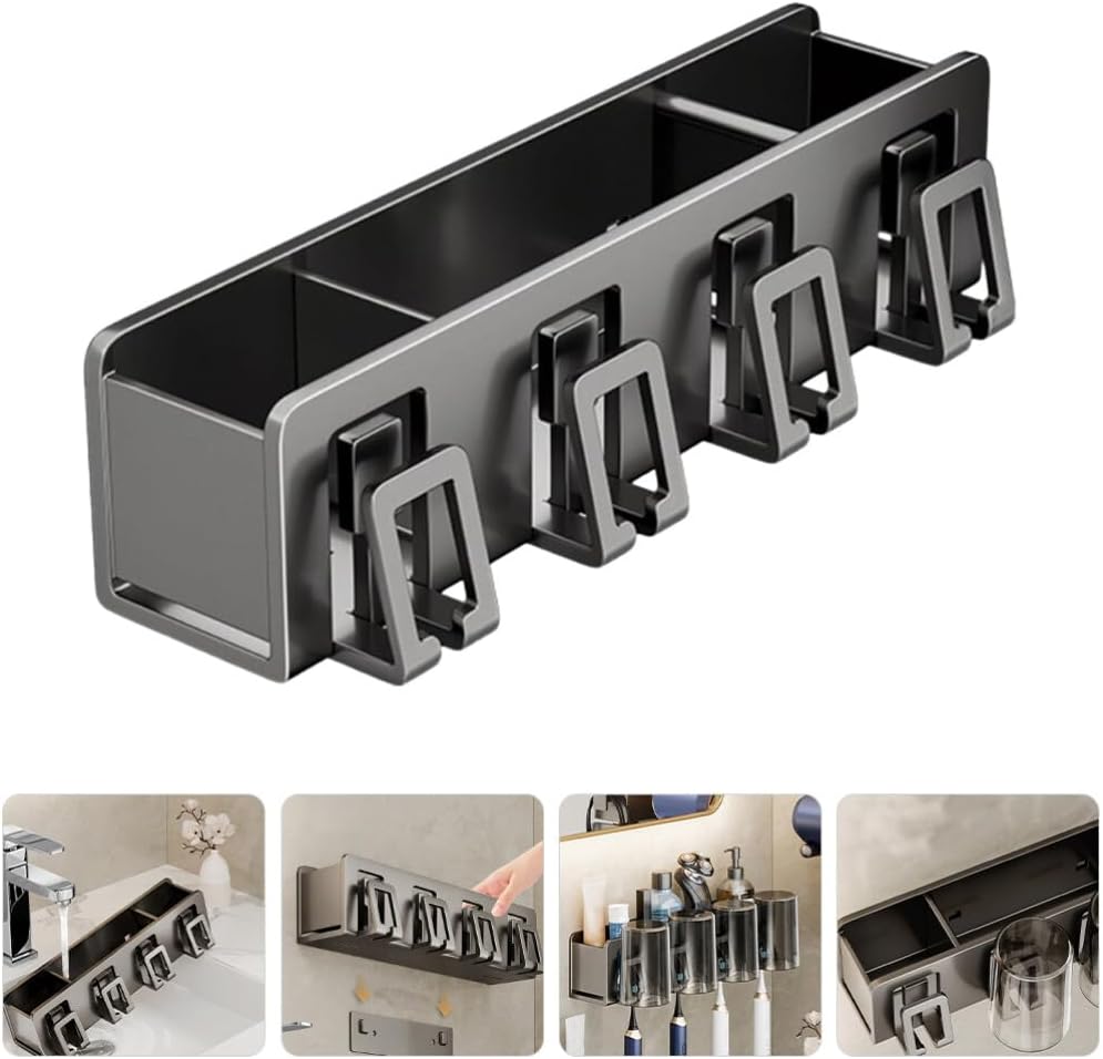 DescriptionThis storage holder for toothbrush and rinse cup at the bathroom. It is made of space aluminum and ABS which is easy to wash and keep clean. Minimalism design and practical toothbrush stand is a practical solution to keep your toothbrush clean.Features🦷-Color:Grey🦷-Material:Space aluminum, ABS🦷-Size:35.00X8.00X6.00cm/13.76X3.14X2.36in🦷- Made of space aluminum, ABS which features with stability and durability, very hard and smooth for usage.- Toothbrush holder is simple, in line with people's aesthetics, bring much convenience to you.- The simple appearance and craftsmanship make the storage rack more unique. - No drill holes, no tools needed, and on the wall after removing. Quickly drain, effectively keep toothbrushes and cups dry and clean.- Makes full use of the space and does not occupy the extra space on the countertop, not easy to fall off. Package Including🦷1 x storage rack🦷1 x sticky hook🦷1 x glue