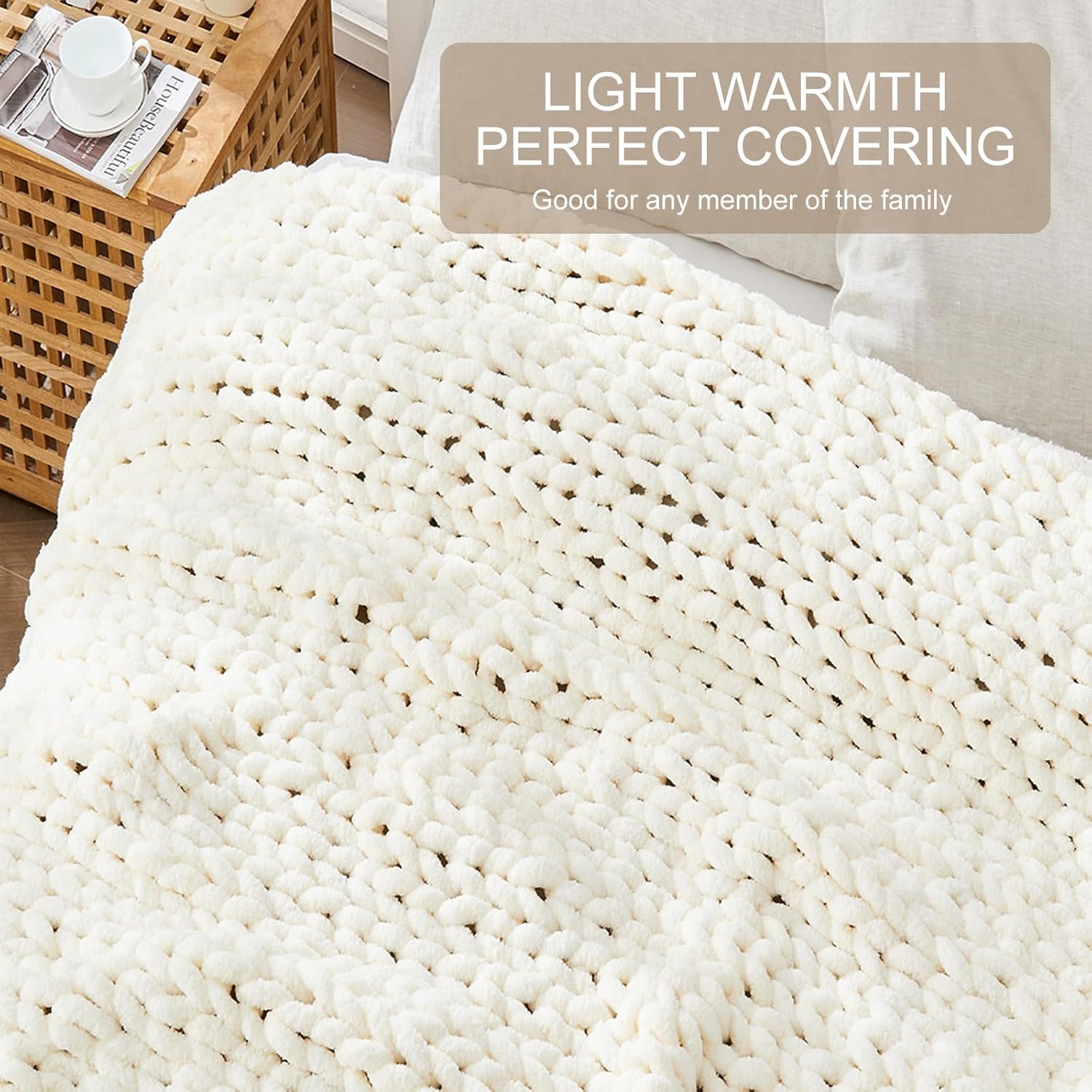 Chunky Knit Crochet Blanket - Thick, Suitable for Sofa, Bed & Home Decoration (Beige, 50in*60in)