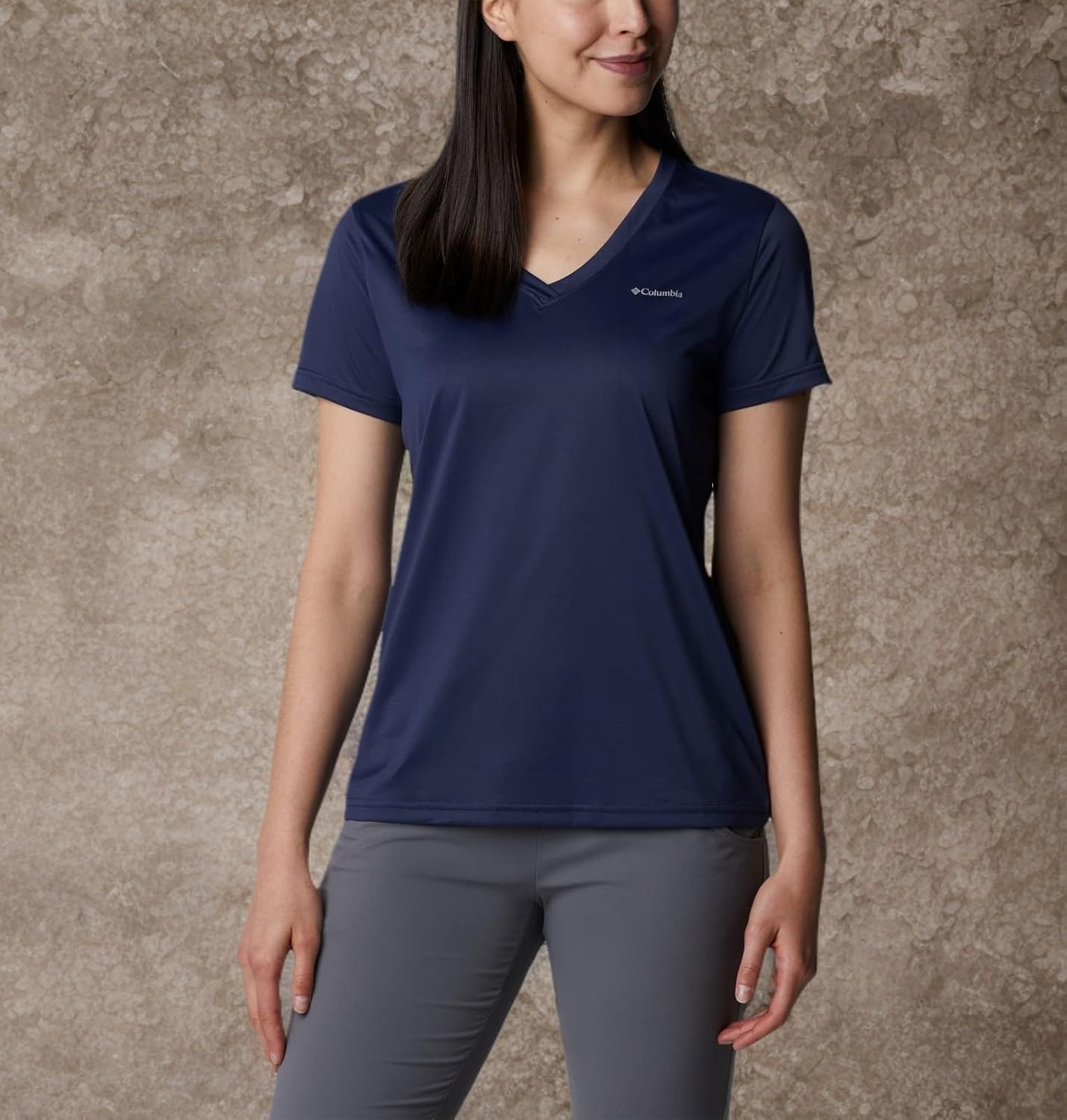 An easy tee for getting out there, breaking a sweat, or just lounging around. Made with a soft comfort stretch knit that wicks away moisture and neutralizes odor for long-lasting freshness – V-neck style. Columbia offers this women’s v-neck shirt in multiple colors and sizes. Extended sizing available. Active and Regular Fit. To ensure the size you choose is just right, please refer to our sizing chart.