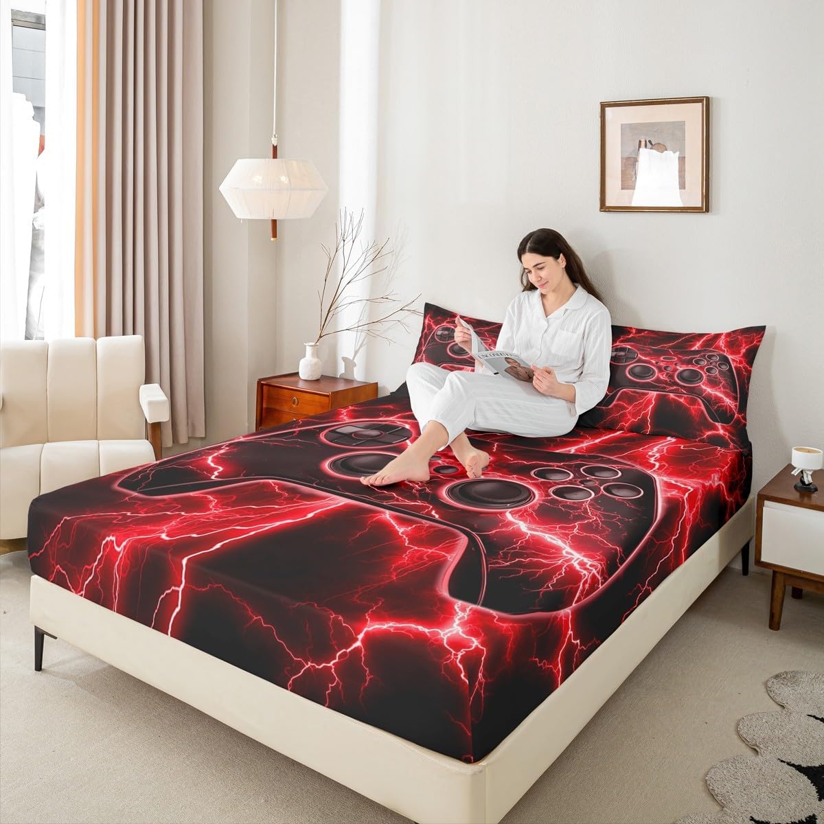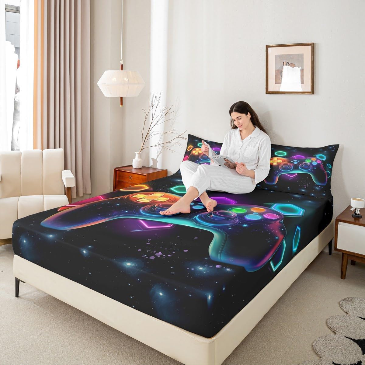 Our fashion Designs Match Any Decor,Modern Fitted Sheet Set Bedding Set,Simply Decorating Your Rooms Any Time You Want,Bringing You Fresh Feel for Year Round Use.Made From Polyester Microfiber Size Information Twin Size Include 2 Pieces Fitted Sheet Set: 1 Fitted Sheet 39"Wx75"Lx16"H(99x190x41cm) and 1 Pillowcase 20"x30"(51x75cm). Full Size Include 3 Pieces Fitted Sheet Set: 1 Fitted Sheet 54"Wx75"Lx16"H(137x191x41cm) and 2 Pillowcase 20"x30"(51x75cm). Queen Size Include 3 Pieces Fitted Sheet Set: 1 Fitted Sheet 60"Wx80"Lx16"H(152x203x41cm) and 2 Pillowcase 20"x30"(51x75cm). Personalize Your Bedroom Beautiful Design and Colorful Print Bed Set,Makes Your Bedroom Unique and Brings You a Wonderful Dream. Washing Instructions Machine Wash Separately In Cold Water,Hang Dry,Do Not Bleach. The Soft Fitted Sheet Bedding Sets Designed for Children,Adult,Men,Women,Teens.This Bed Sheets Is Also Suitable for Full Seasons,Spring,Summer,Autumn and Winter. We Are Dedicated to give You An Excellent Experience, Satisfaction Service from The Moment You Place Your Order Until You Sleep on Your New Bedding The First Time.