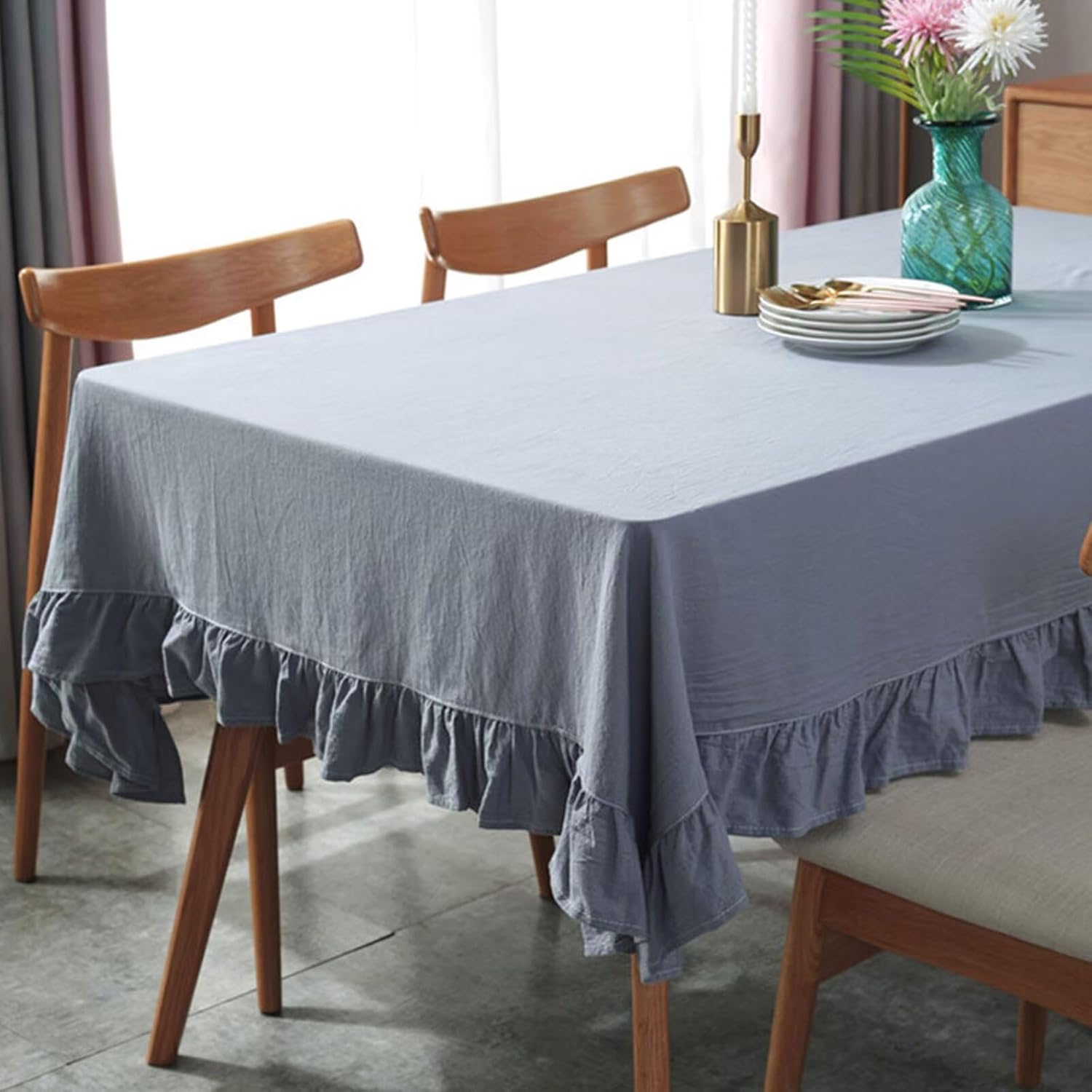 JadeRich Solid Color Ruffled Tablecloth Cotton Rectangular Square Table Cover Decoration for Kitchen Dinning