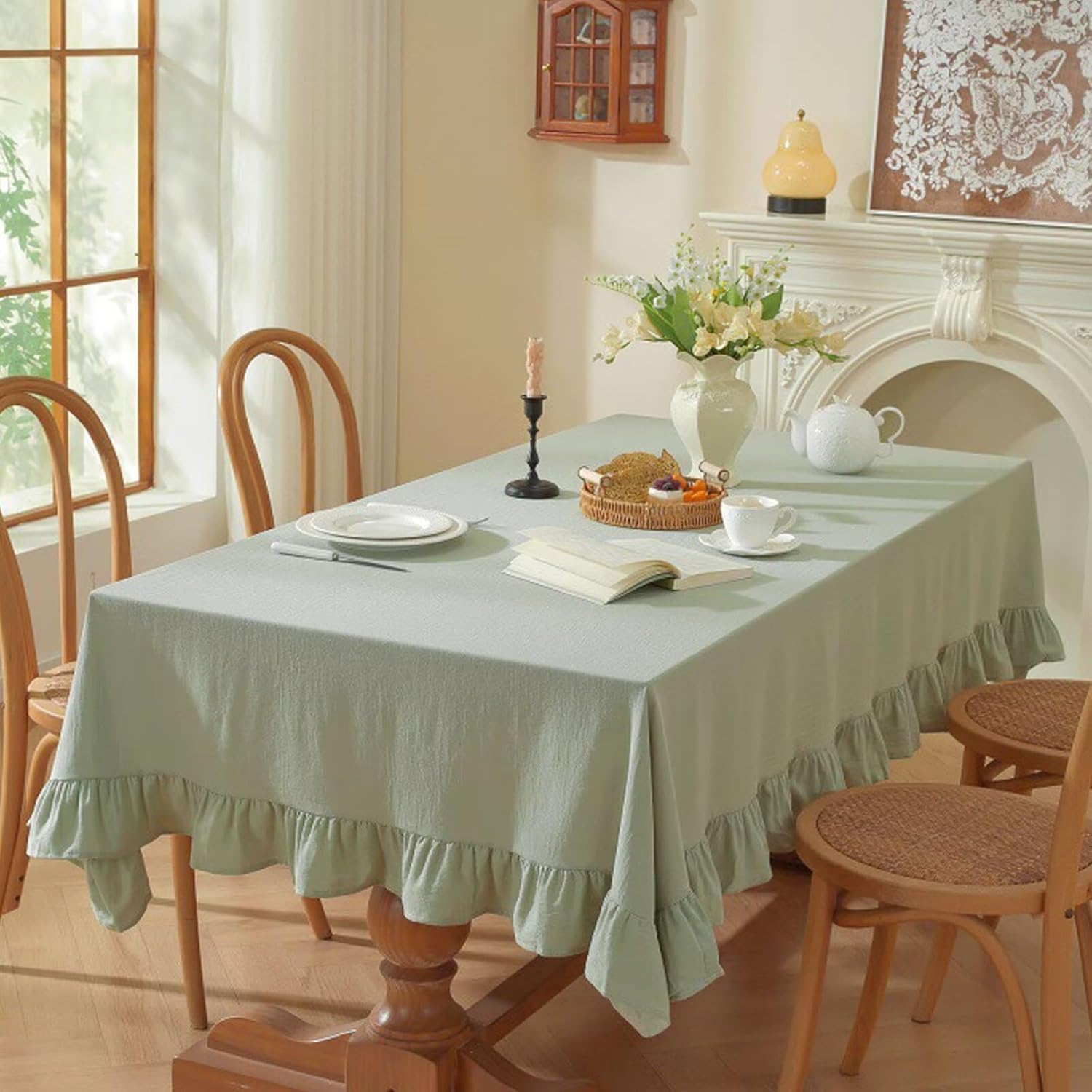 • SIZE: The size of the tablecloth includes the length of the ruffled hem; The length of the ruffle is about 4 inches; Please measure the size of your table before purchasing; For better decorative effect, we recommend add about 20-30 inches or more according to the length and width of the table when choosing tablecloths