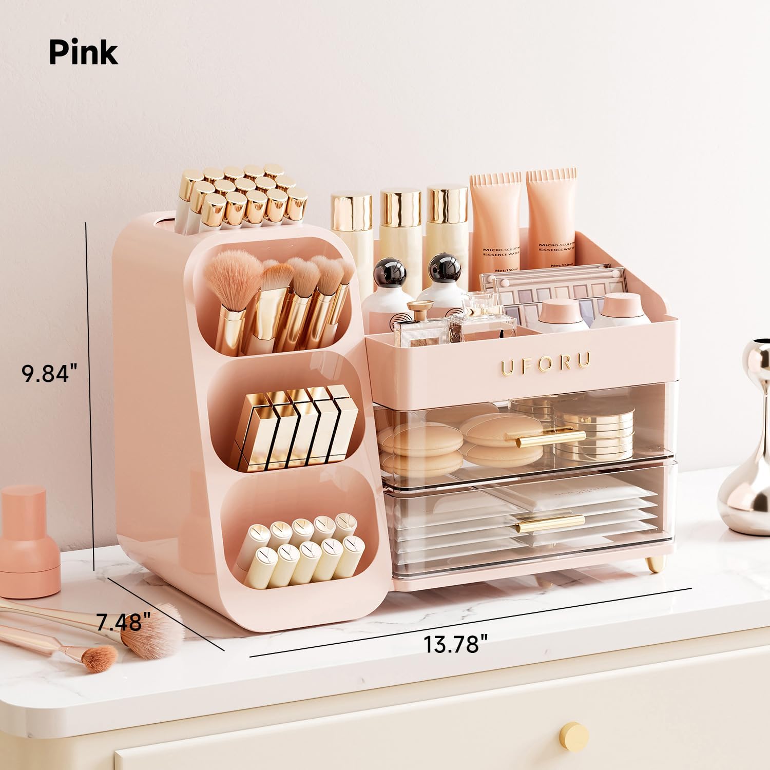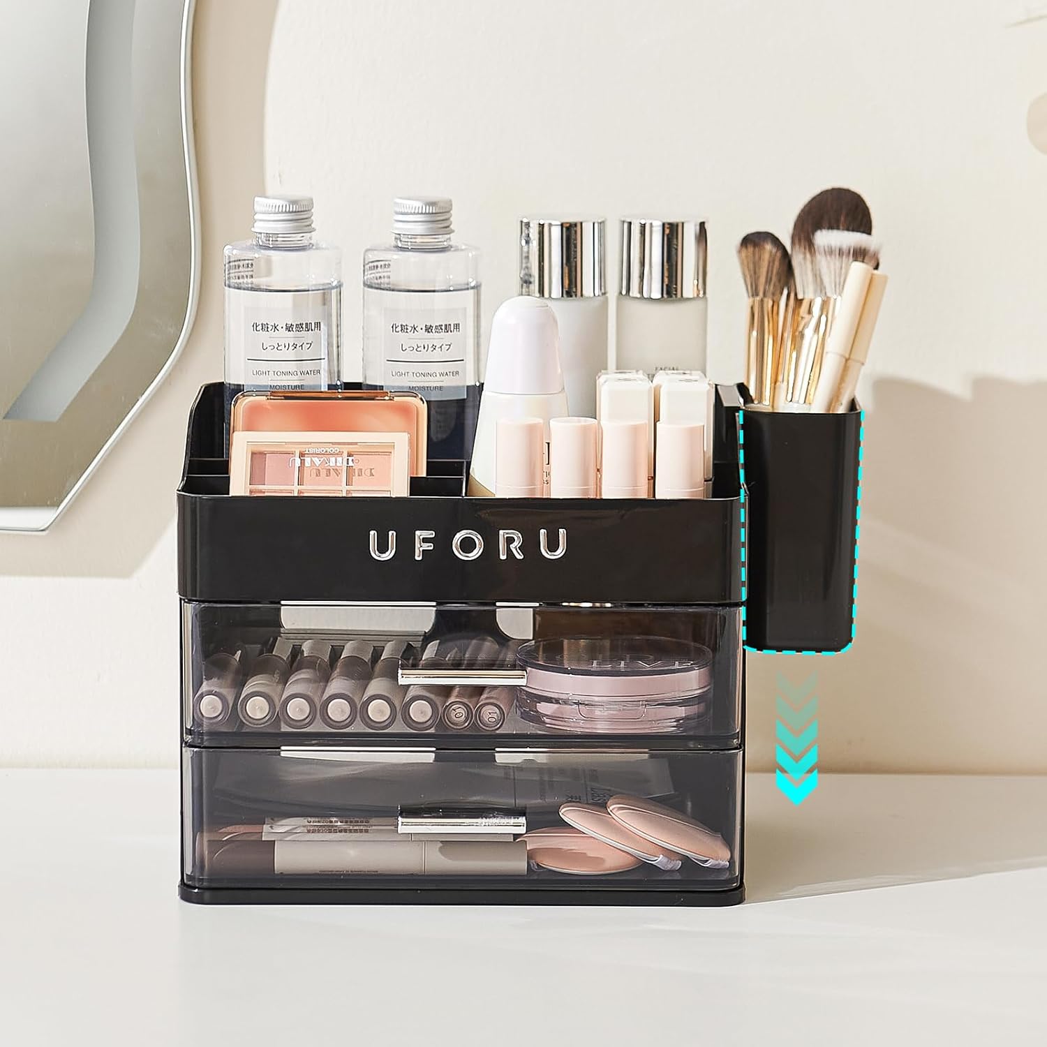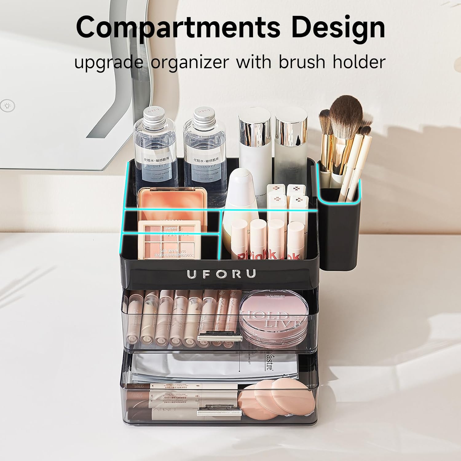 UFORU Makeup Organizer for Vanity, Countertop Organizer With Drawers, Spacious Cosmetic Display Case for Beauty Essential, Skincare, Lipstick, Black