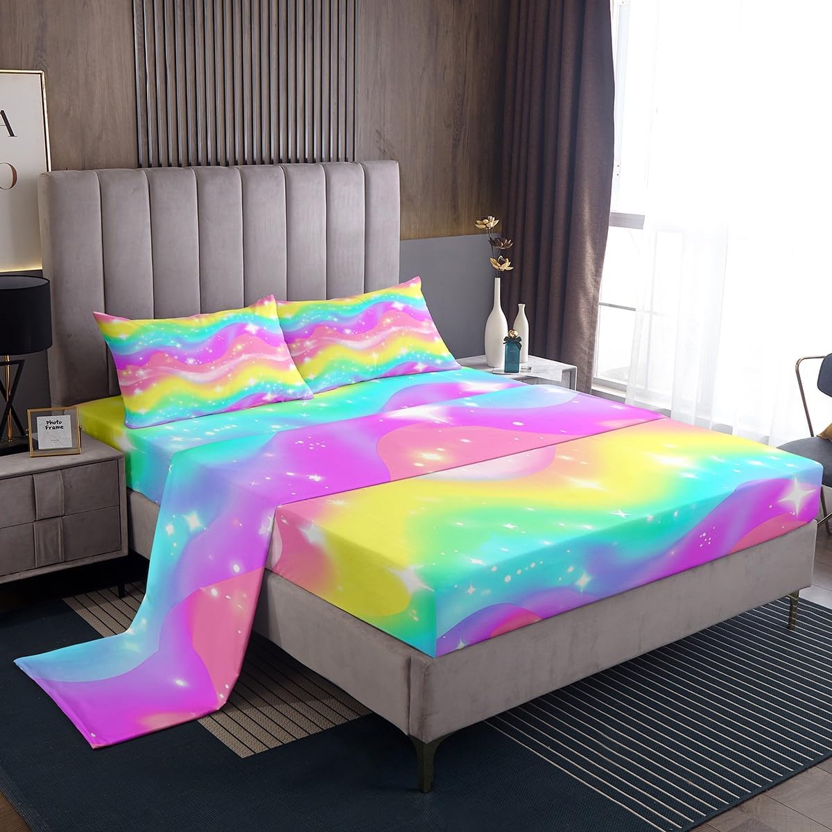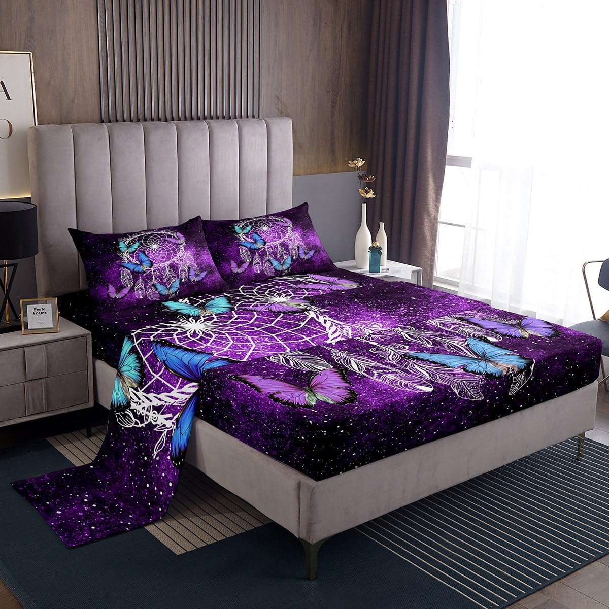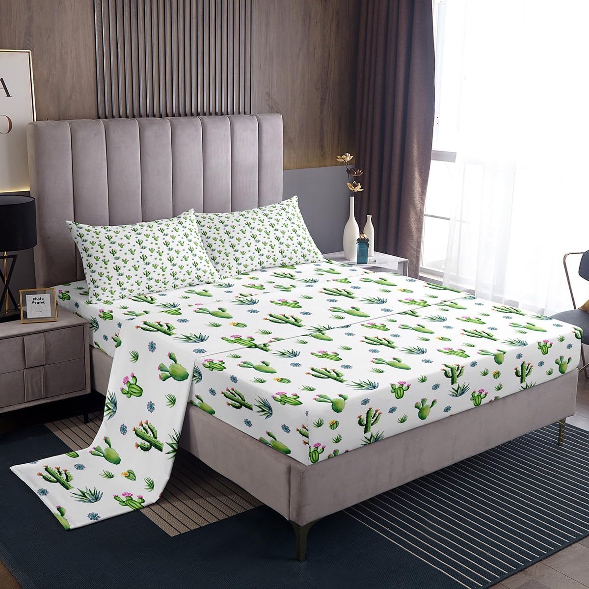 We Have Been Listening to The Opinions of Our Customers From The Reviews,So We Developed a New Bed Sheet Set and Added Flat top Sheets to Meet The Needs of More People.Our Bedroom Decor Bed Sheets Set Look with The Vivid Stylish and Elegant Print Bedding Set. Size Information Twin Size Includes: 1 Pillowcase(20”x30”) and 1 Fitted Sheet(39”x75”x16") and 1 Flat Sheet 96x66" Full Size Includes: 2 Pillowcases(20”x30”) and 1 Fitted Sheet(54”x75”x16") and 1 Flat Sheet 96x81" Queen Size Includes: 2 Pillowcases(20”x30”) and 1 Fitted Sheet(60”x80”x16") and 1 Flat Sheet 102x90" King Size Includes: 2 Pillowcases(20”x35”) and 1 Fitted Sheet(78”x80”x16") and 1 Flat Sheet 106x90" Materials: Luxuriously Brushed Microfiber Fabric Fabric and Design: Silky Soft Brushed Microfiber Cotton Feel Material Bed Set Bedding Set Fashion forward Inspired 3D Print Patterned Technique Flat Fitted Sheet Top Sheet Features: Luxuriously Soft Feel for a Great Night Sleep with Less tossing and Turning Just The Right Fill to Keep You Warm In The Winter and Comfortable In The Summer Built to Last with Premium Fabrics and Expert Stitching Care Instructions Dry Clean Preferred.Machine Washable,Use Front Loader Machine(Or top Loader without Agitator)to Avoid Tearing,Use Cold Water on Gentle Cycle,Tumble Dry Low.