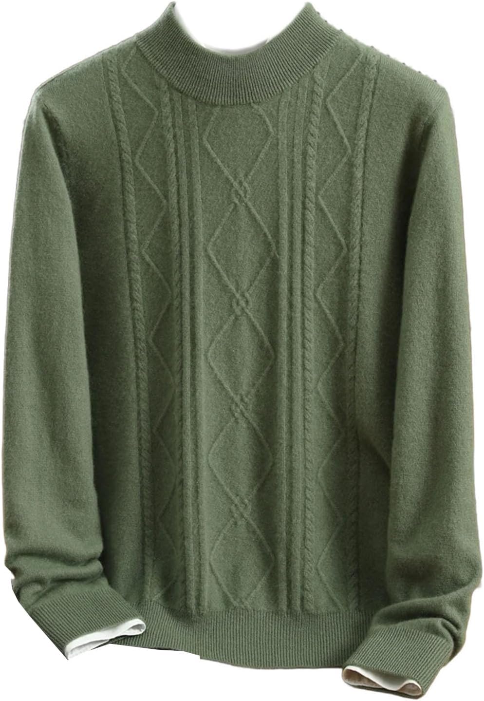 Men Wool Sweater Twist Flower Pullover Mock Neck Cashmere Knitwear Long Sleeve Coat