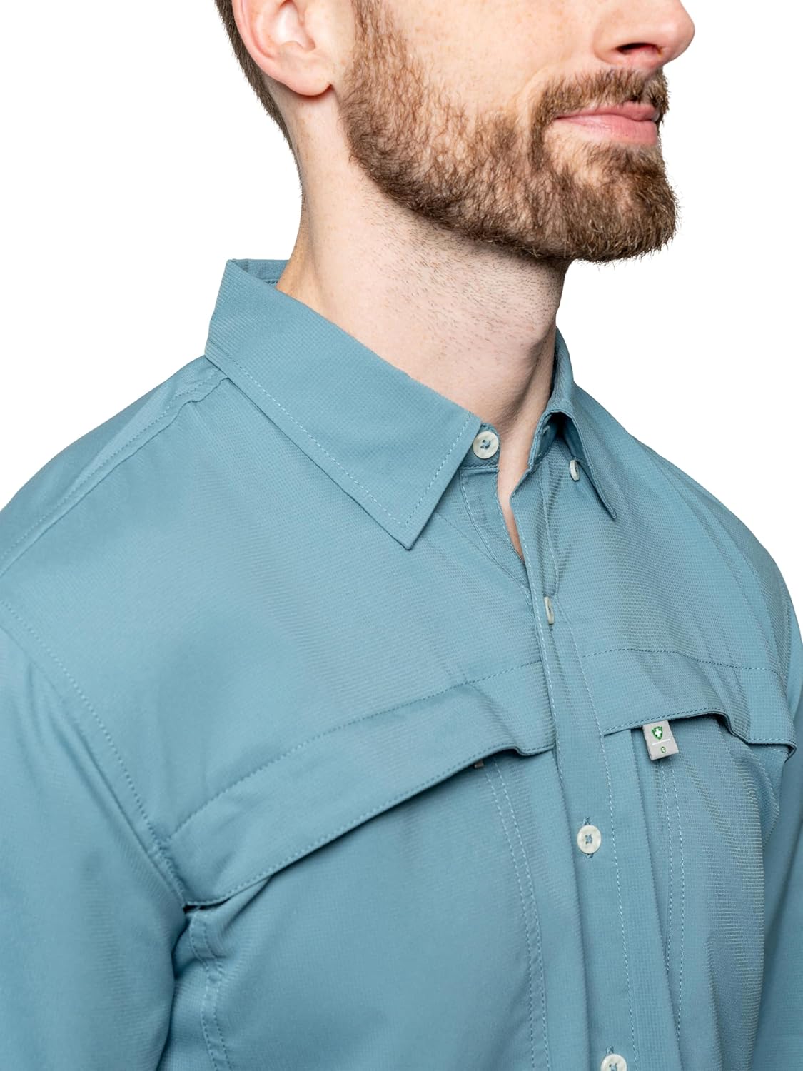 Repels mosquitoes, ticks, ants, flies, chiggers and midges EPA-registered permethrin repellent built into the fabric. 100% recycled polyester, 2.36oz.Made from approximately 15 bottles. UPF 30+ sun protection. Quick dry, breathable and wicking. Right front pocket with zipper closure. Left front pocket with hook and loop closure. Roll-up sleeve tabs. Back cape with mesh vent. Hidden button down collar. Normal home laundering is recommended. Do not dry clean.