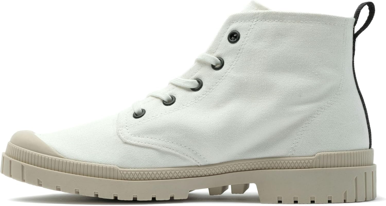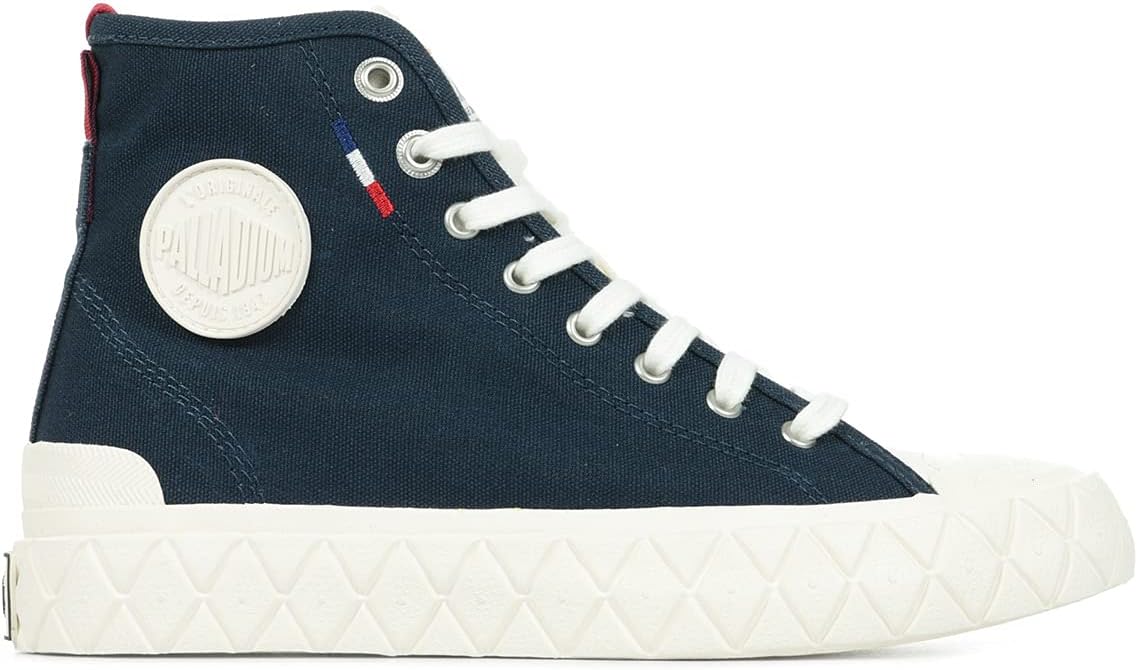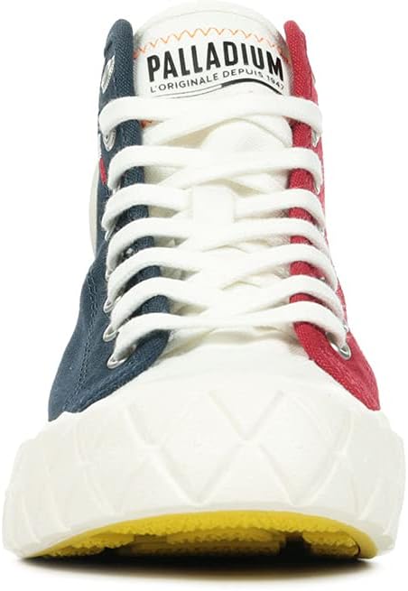The Palla Ace mid cut canvas sneakers are inspired by our archive and rich sport history. The magnified diamond shape outsole is a reference to the diamond band on our iconic Pampa boots, and the tricolore flag on the side is a strong reminder of the French history of the brand. The protective outsole with rubber toecap and the soft washed canvas upper makes it a comfortable and easy style.