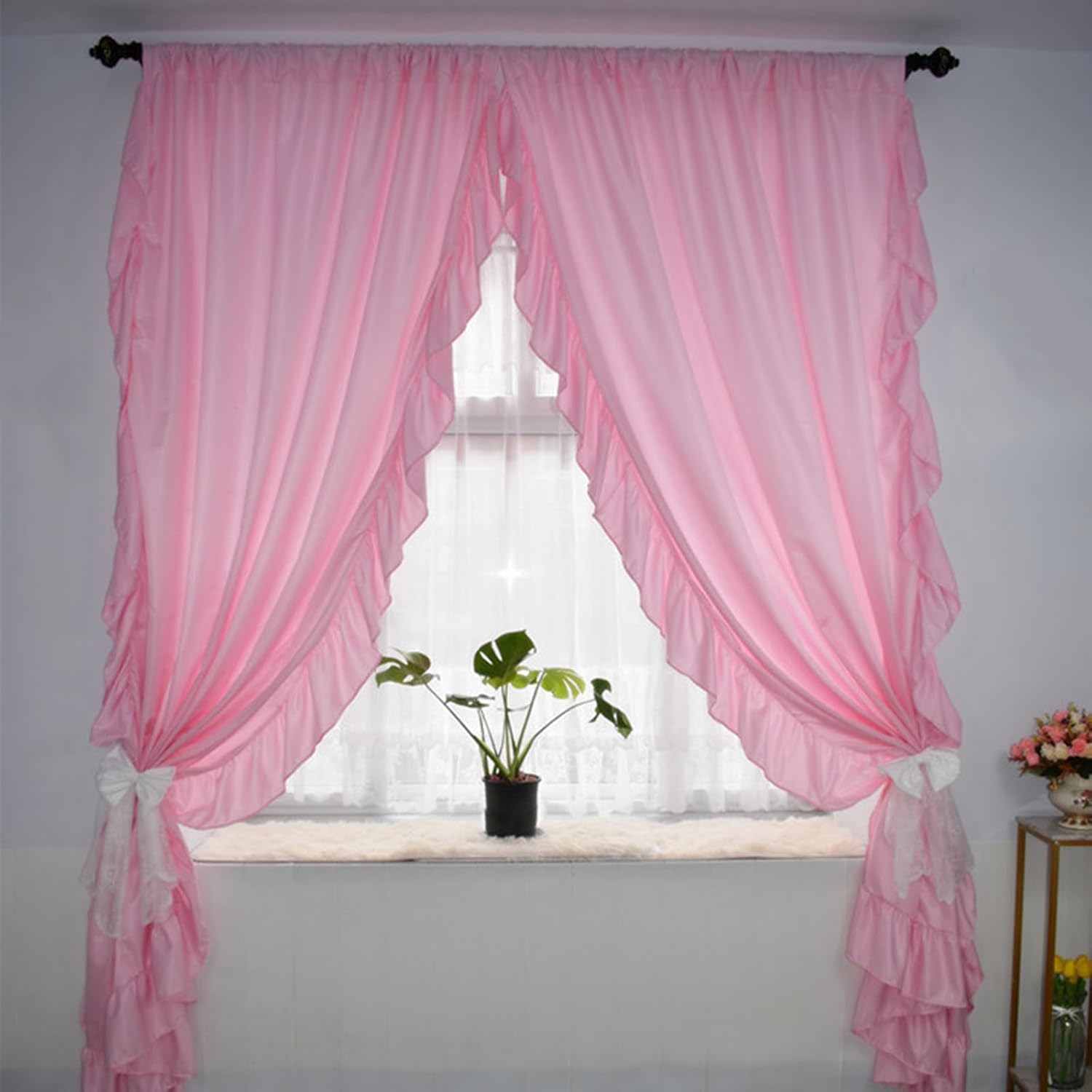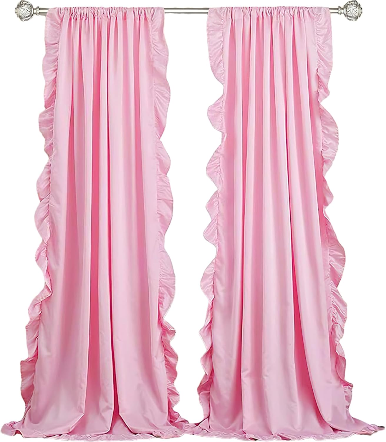 • Light-filtering Drapes: Solid curtain drapes pair, with ruffle trims, can balance light and protect privacy. It smartly allowing natural light and fresh air flowing into your room, but still enhancing light in your home. Decorate the window head or lower part, or the door head, door opening, and so on.
