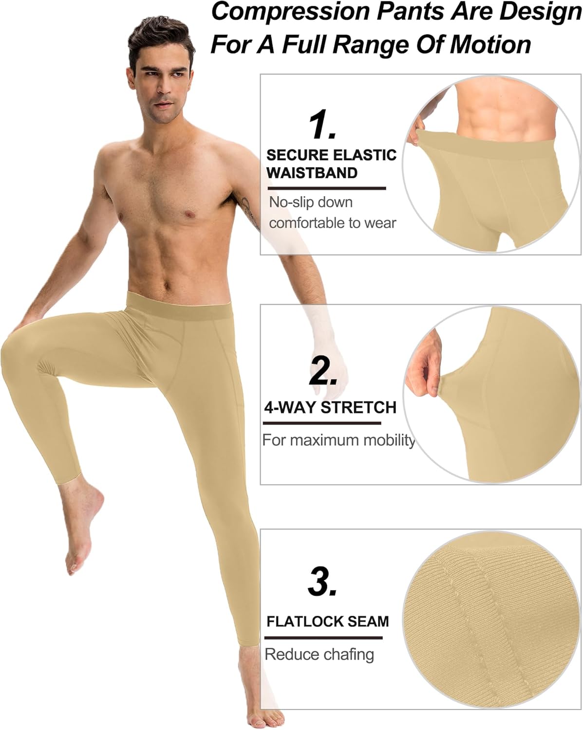 Men's Compression Pants with Pocket, Athletic Sports Leggings & Running Tights, Winter Base-Layer BottomsMens full length leggings tights designed with SOFT & BREATHABLE & LIGHTWEIGHT fabric, offers you long lasting comfort during your workout on days. - 4-way stretch offers a full range of motion, the high-stretch fabric offers compression support & enhances your performance. - Quick-drying and breathable fabric can quickly transfer sweat and keep your body dry and comfortable. - SPVISE Compression Fitness Series for releasing heat and wicks moisture with a cool dry effect, Perfecr for All Weather and Season. - Ergonomically designed, abrasion-resistant flat-lock seam lines highlight the leg muscles and stay away from high-wear areas.About Men Running Tights More Details: Material: Mix of Polyester and Spandex. Package: 1 pack of compression pants men leggings. Suitable season: Summer, winter, spring, autumn. Color: Black, White, Red, Blue, Dark Green, Camo Black, Camo Green. Size: S, M, L, XL, XXL. Design: Lightweight, Compression fit, Skin fit, Phone Pockets, Zip Pocket. Occasions: Running, jogging, cycling, weight training, basketball, soccer, football, bjj, yoga, gym fitness, yoga, skiing, snowboarding, hiking, backpacking trip and other outdoor and indoor sports.PLEASE NOTICE: 1. Manual measurement, the size will have an error of 0.5-2mm, please refer to the actual size. 2. Due to the difference in light and screen, the color of the product may be slightly different from the picture. Thanks for your understanding!