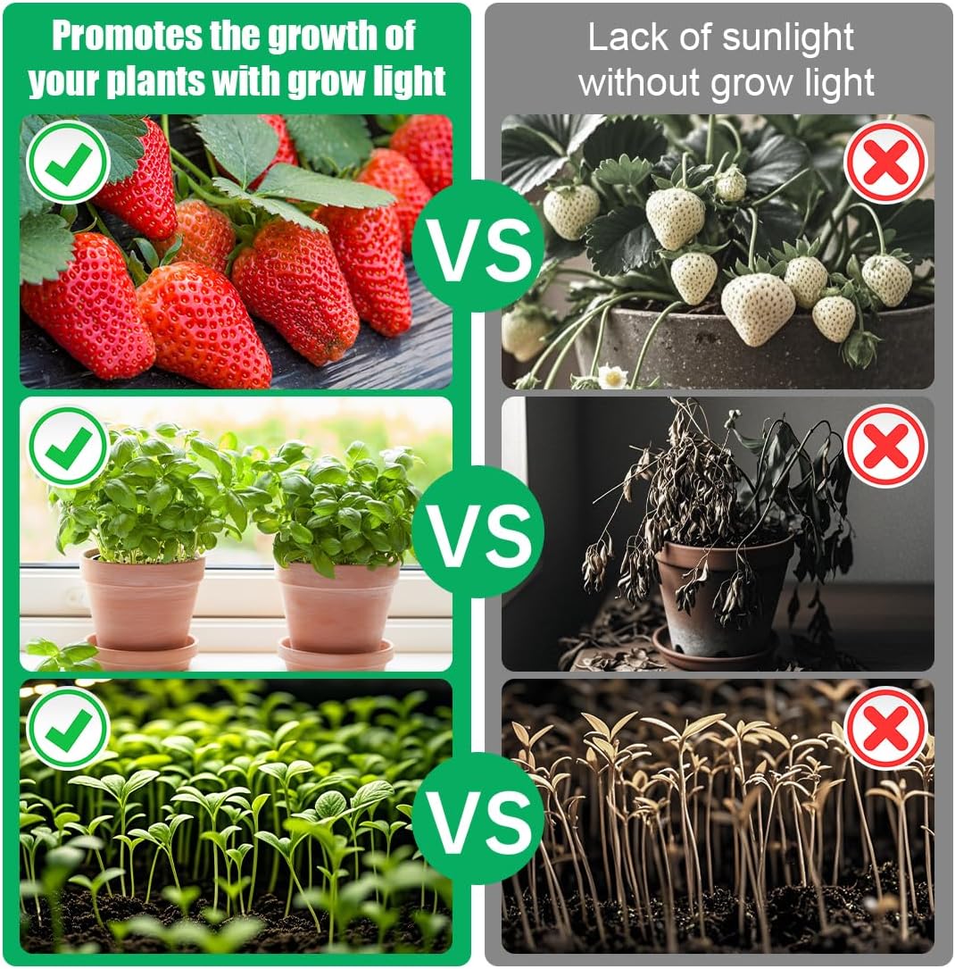 • Full Spectrum Sunlike Light for Healthy Growth The 4 LED grow lights feature full spectrum technology, mimicking natural sunlight to provide all wavelengths plants need for photosynthesis, promoting growth, flowering, and fruiting.