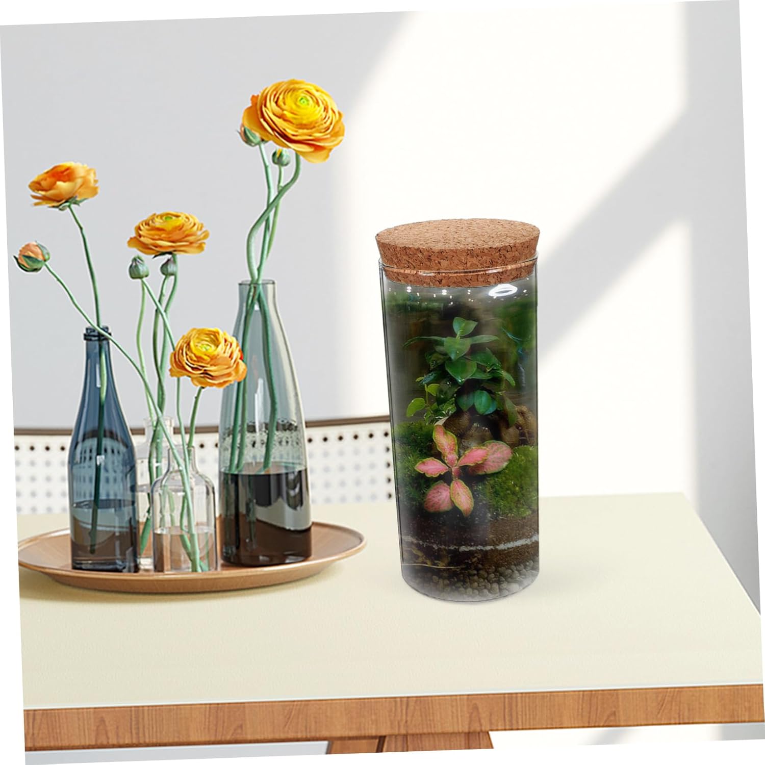 Package Include 3 x Terrarium Bottle with Lid Features -Material:Glass, cork bottle -Color:Transparent table adornment -Size:18.50X7.50X7.50cm/7.27X2.95X2.95in terrarium - Clear material, displays the plants, flowers. A creative decoration for the home, garden, office, or patio DIY plants container. - Easily match your interior decoration, brings some style to any indoor space transparent bottle. - Simple and artistic design makes it more attractive to people, can be a nice present for your friends decorative micro landscaping container. - The glass bottle is also a beautiful and creative decoration. Suitable for decorating a room or sending friends landscape bottle. - Select cork and glass materials, sturdy and fashionable, the landscape bottle can be use for a long time micro landscape DIY bottle.Goods Informationterrarium jar DIY landscape bottle is one of for you.micro landscaping container Are you looking for a professional, yet DIY landscape bottle? Are you in search of a sturdy, trustworthy DIY landscape bottle that can be used to do multiple jobs? , ! Our glass landscape bottle must meet your needs