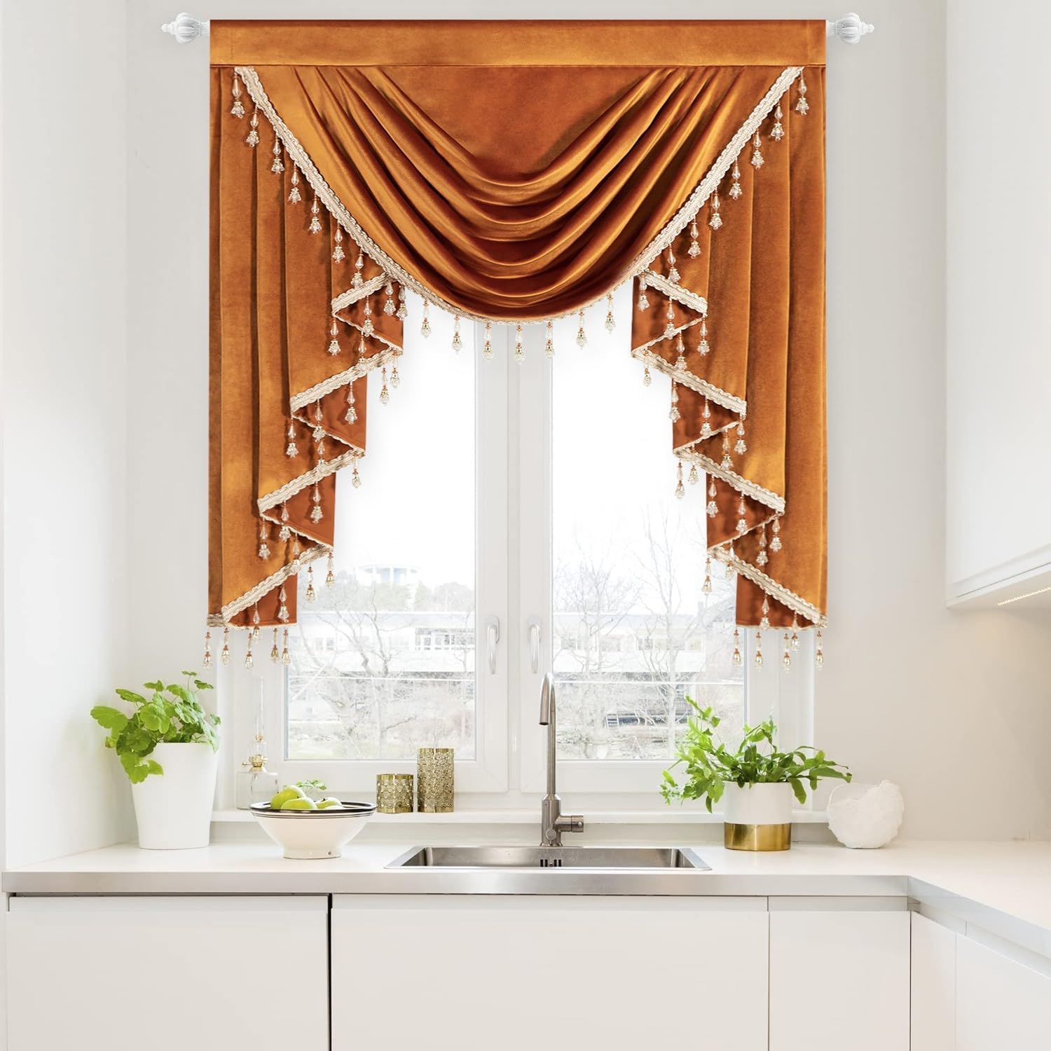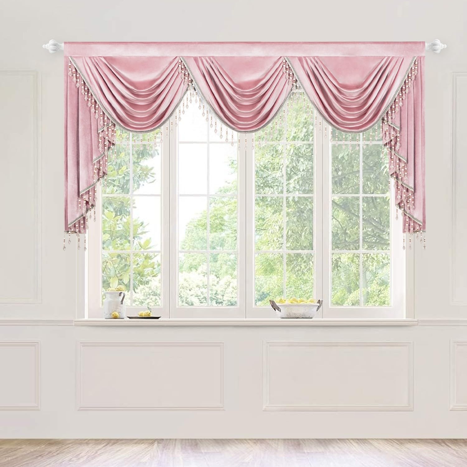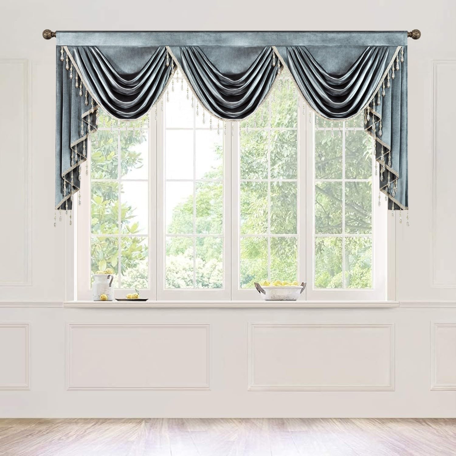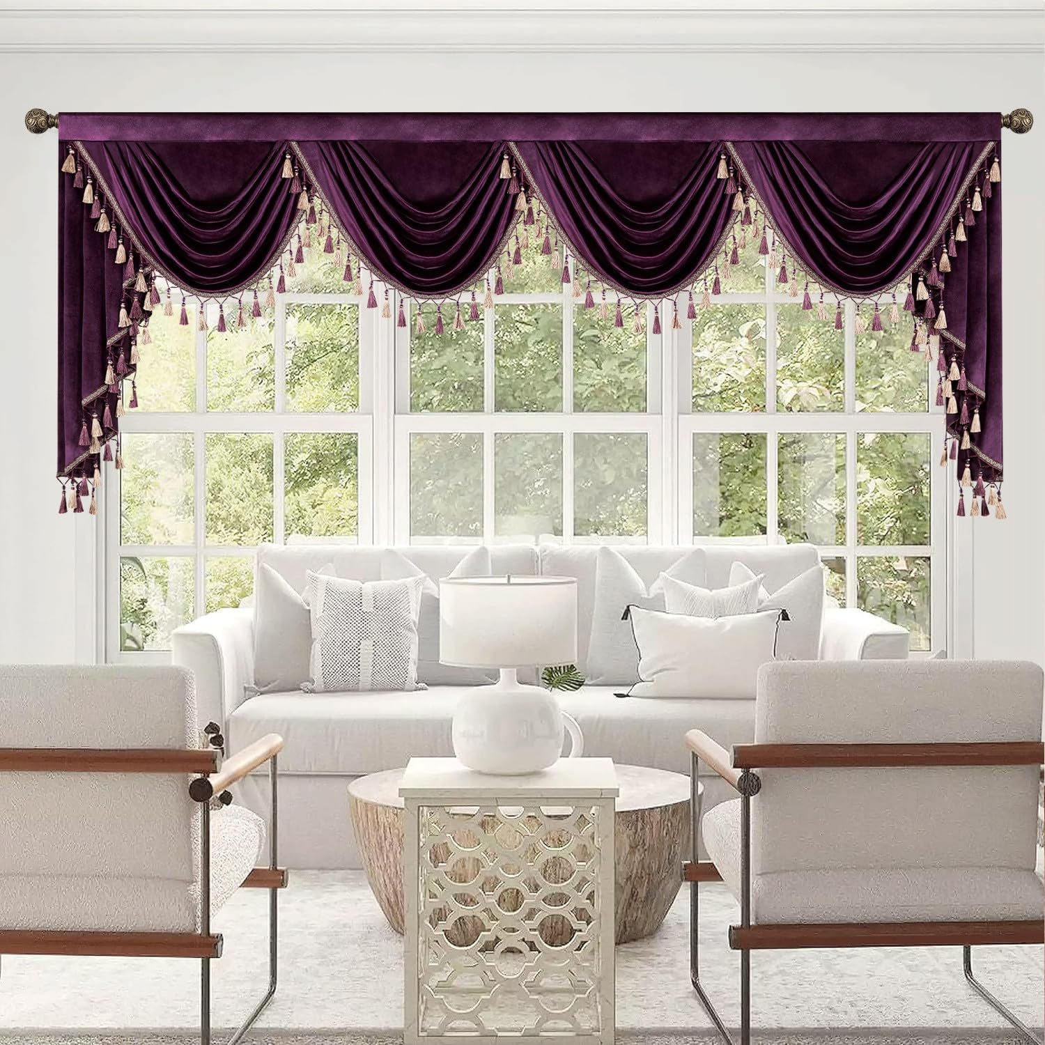 | Special Feature | Handmade Tassel Trim, Light Filtering, Retro European Style, Rod Pocket Header, Super Soft Velvet Fabric |