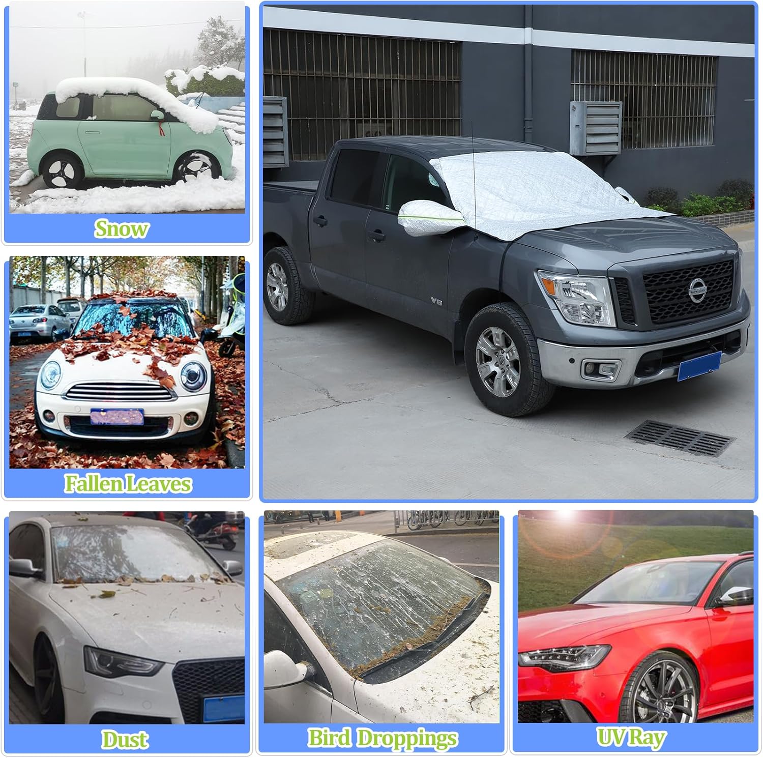 Specification:Material: Oxford fabricSurface Finish: Polished Glossy PVC-Coating.Color: Sliver/BlackPackage Size:33*25*8cm;Package weight: 465g / 522gfor Left / Right Hand DriveFeatures:-- 100% Brand New In Box-- High quality Oxford fabric with waterproof PVC coating.-- Thin & Perfect Fit.-- Easy installation and easy cleaning.--Windproof, Rain-proof, Sun-proofNote:1.We provide clear pictures, measurements where possible. Please check as much as possible to make sure the item is the one that you need.2.Please allow 0.5-1 inch difference due to manual measurement.(1inch=2.54cm)3.The color of the actual items may slightly different from the listing images due to different computer screen, thanks for your understanding.Package Included:1 x Car Front Windshield Shades with Box PackageNote: Please check whether this item can fit on your car before purchasing